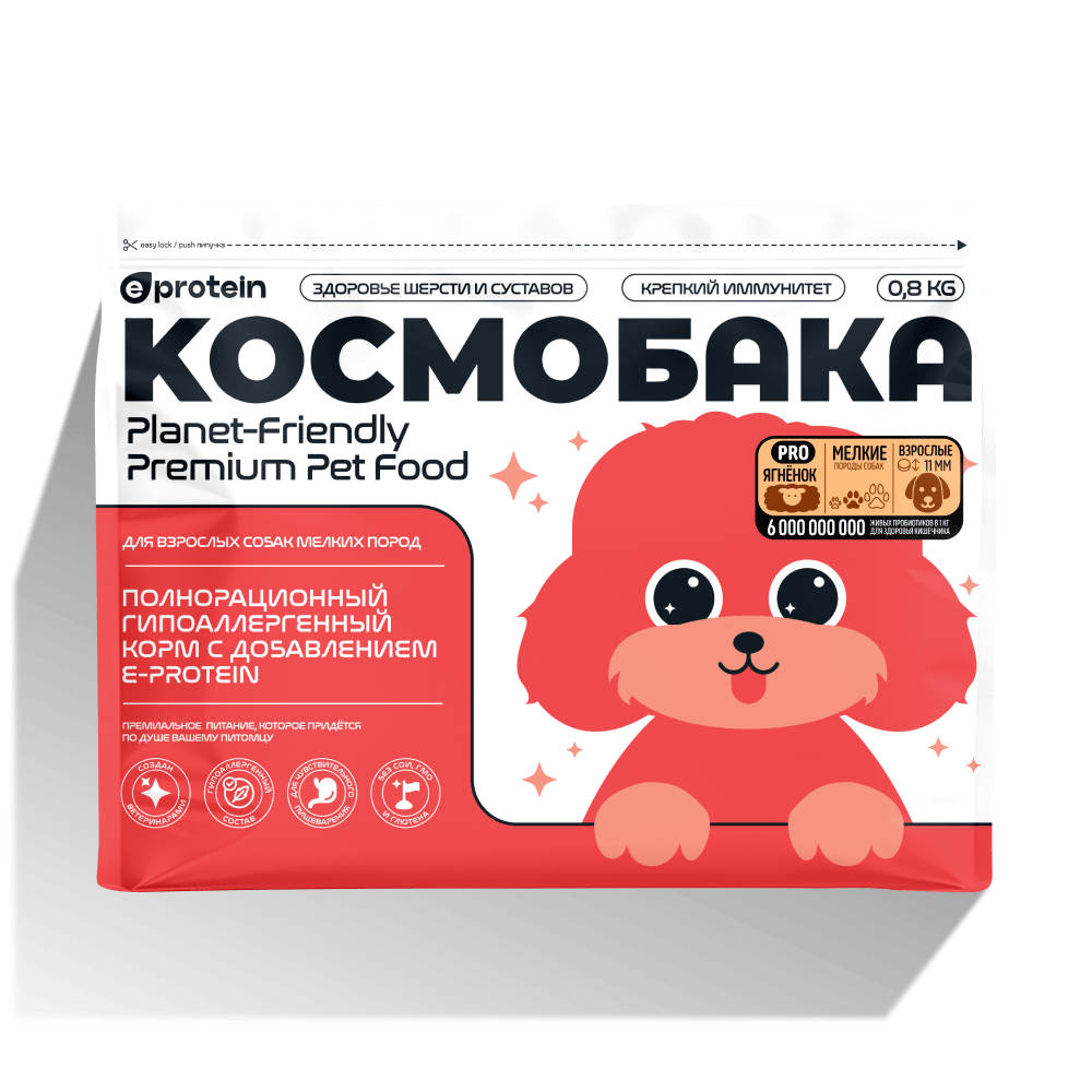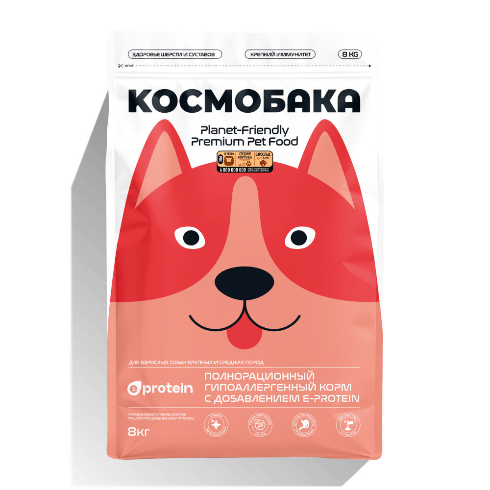 — Космобака — гипоаллергенный вариант для средних и крупных пород с энтопротеином и пробиотиками