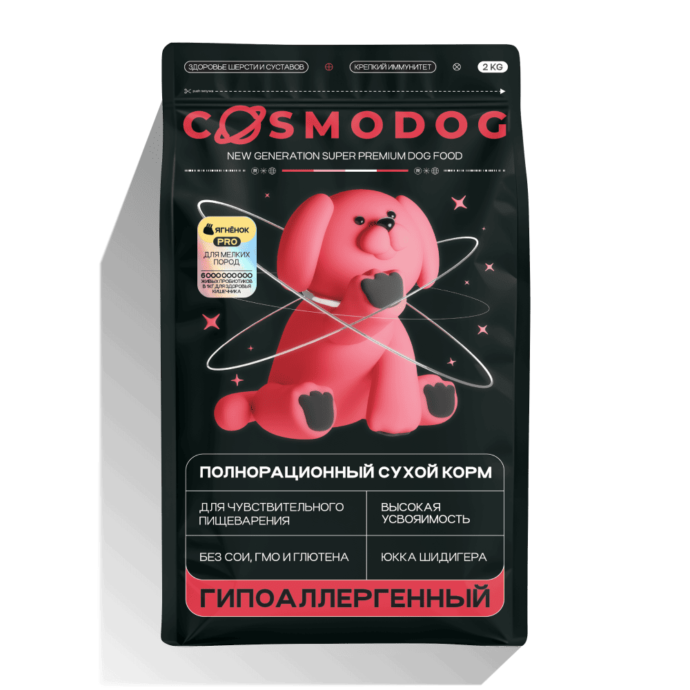 Аллергия (зуд, покраснение кожи) — повод пересмотреть состав и попробовать гипоаллергенный вариант (например, с ягнёнком или индейкой, либо с энтопротеином, как в Cosmodog от Cosmopet).